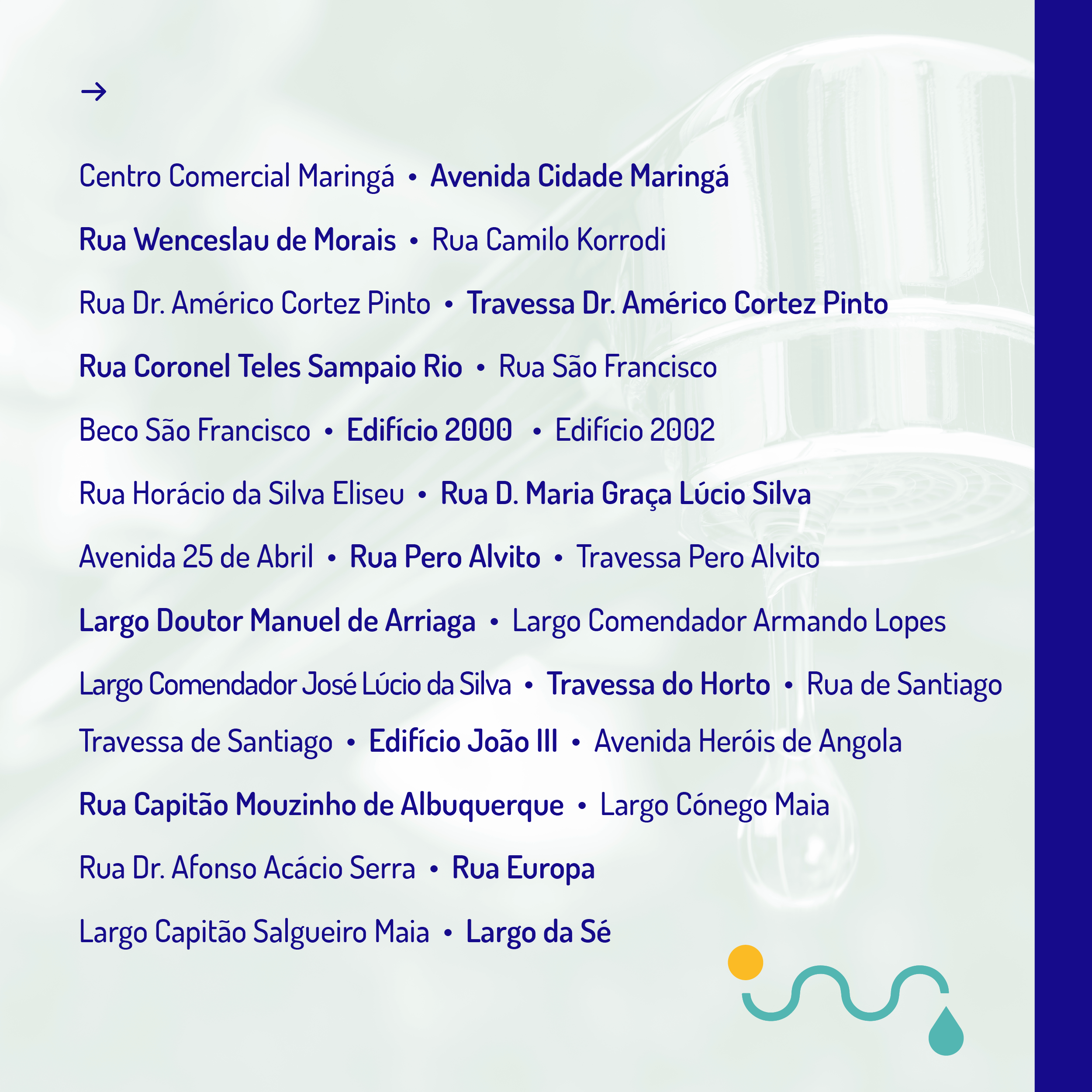 Sempre que possível, disponibilizaremos horários precisos e a indicação das zonas afetadas. Consulte a lista para obter informações detalhadas.